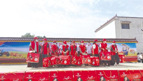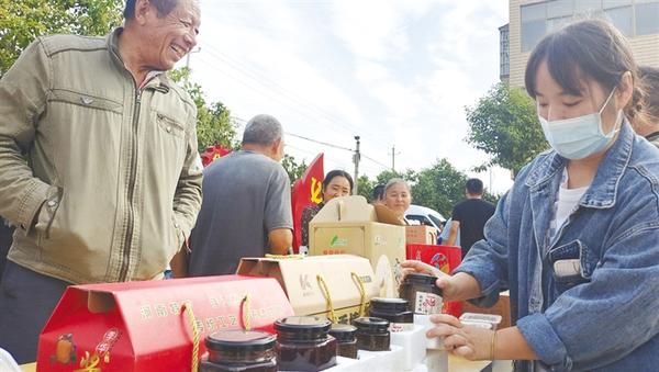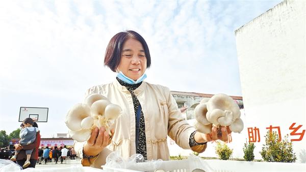 活动现场,产自本地的玉米、大豆、花生,以及蘑菇、酱豆等十多种特色农产品悉数亮相,引来群众围观。