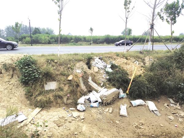 市城乡一体化示范区许湾办事处大王庄村坑边垃圾堆放现象严重
