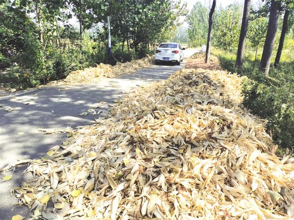 鹿邑县涡北镇张小楼村路面有大量秸秆