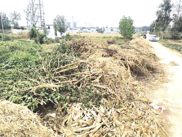 市城乡一体化示范区许湾办事处郑庄西侧道路被大量秸秆和杂物占据