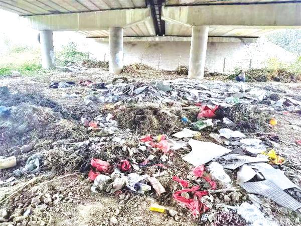 市城乡一体化示范区许湾办事处郑庄西队西侧桥下被白色垃圾和各种杂物堵塞