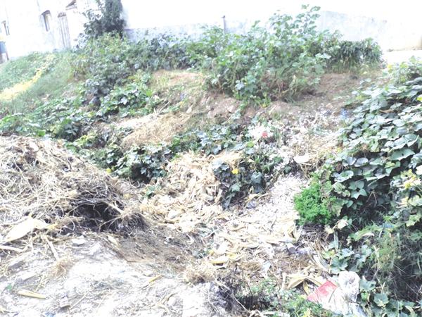 周口港区李埠口办事处李埠口小学西侧沟渠北侧有大量生活垃圾