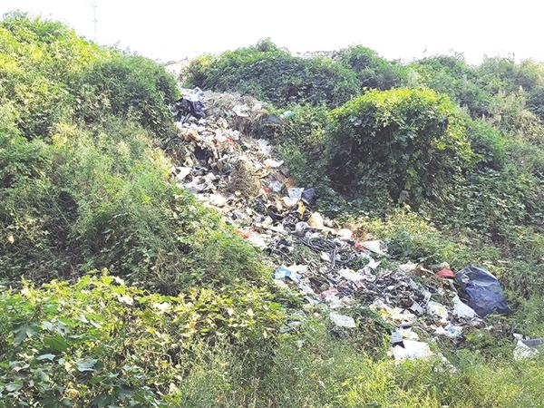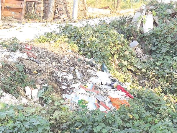太康县清集镇西扶村东侧沟内堆积大量生活垃圾