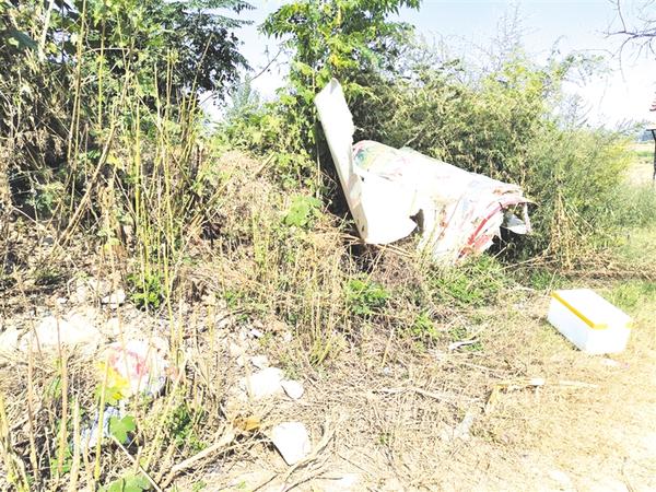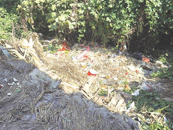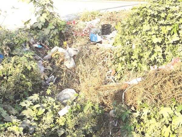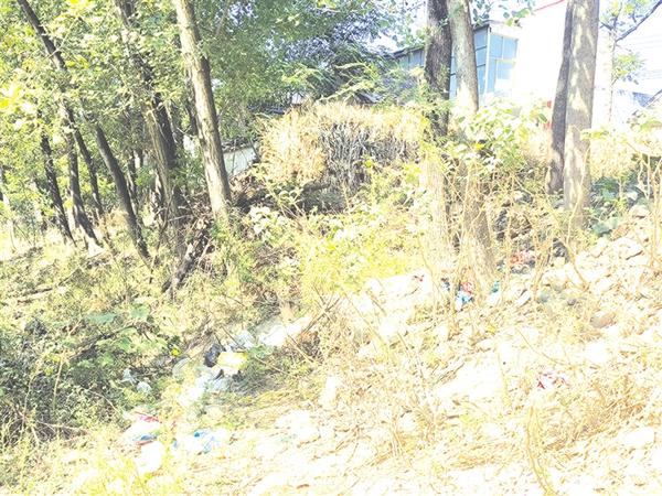 太康县马头镇后坡村村南沟边散落各种垃圾杂物