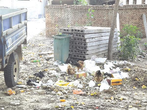 太康县马头镇王寨村村中垃圾箱内垃圾溢出,垃圾满地
