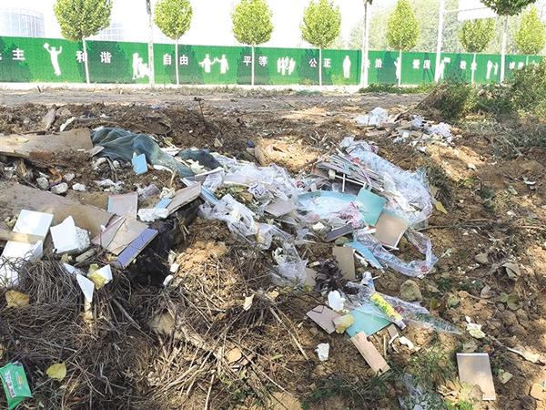 周口港区李埠口办事处未来家园项目对面依旧存在生活垃圾露天堆放问题