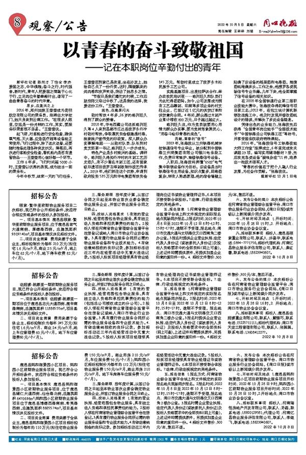 六、发布公告 本次招标公告在河南省物业管理综合监管平台、周口市物业服务行业协会网站, 《周口日报》或市级以上新闻媒介同步发布。