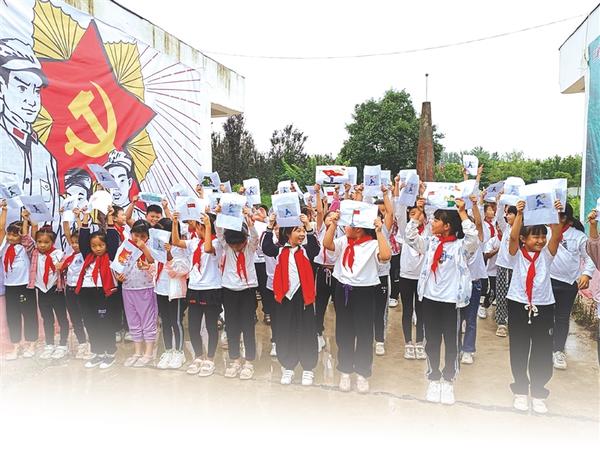 三岗革命根据地的孩子们展示绘制的红色童画。国庆期间,西华县艾岗乡双喜临门——2022年河南省“喜迎二十大 欢乐进万家”十大群众文化活动评选揭晓,艾岗乡文化合作社村歌作品《我的家乡半截楼》和村画作品《红色童画映初心》双双荣获该活动金奖。记者 张猛 通讯员 苏韵棠 摄