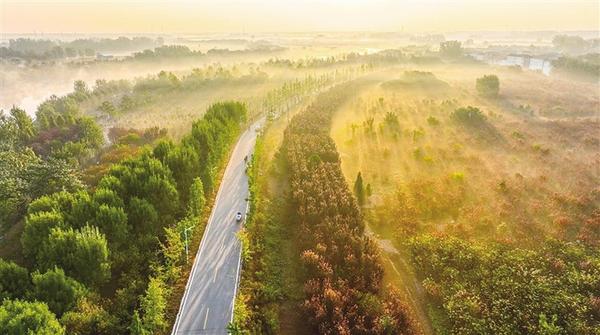 10月12日清晨,在鹿邑县涡河省级湿地公园,弥漫在空气中的晨雾犹如一层薄纱,若隐若现,朦朦胧胧,倾洒在水面和大地上,轻盈飘渺,犹如人间仙境,美不胜收。①2
