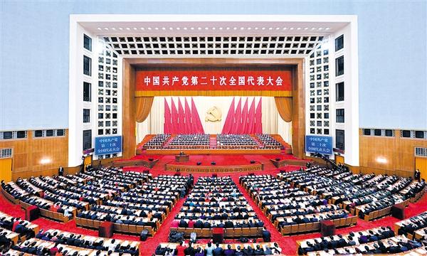 习近平代表第十九届中央委员会向大会作了题为《高举中国特色社会主义伟大旗帜为全面建设社会主义现代化国家而团结奋斗》的报告。习近平指出,中国共产党第二十次全国代表大会,是在全党全国各族人民迈上全面建设社会主义现代化国家新征程、向第二个百年奋斗目标进军的关键时刻召开的一次十分重要的大会。大会的主题是:高举中国特色社会主义伟大旗帜,全面贯彻新时代中国特色社会主义思想,弘扬伟大建党精神,自信自强、守正创新,踔厉奋发、勇毅前行,为全面建设社会主义现代化国家、全面推进中华民族伟大复兴而团结奋斗。