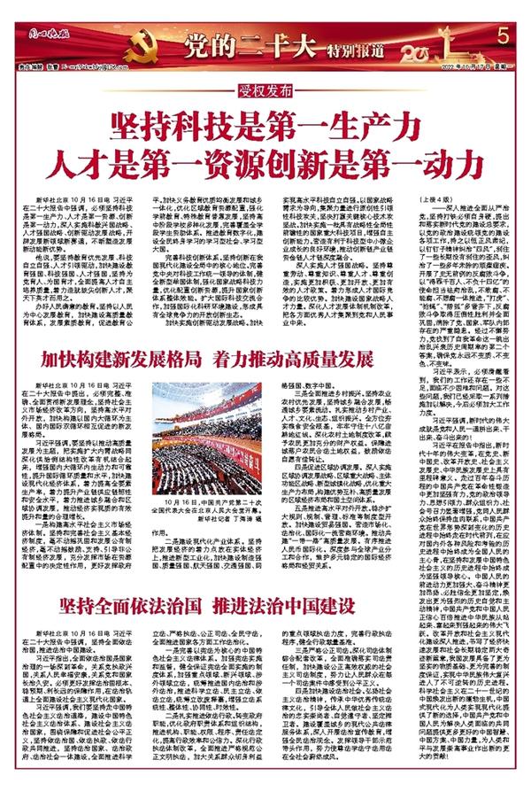 新华社北京10月16日电 习近平在二十大报告中强调,坚持全面依法治国,推进法治中国建设。