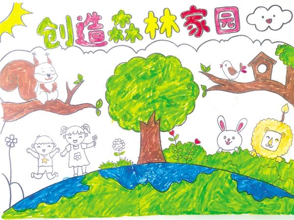 我心目中的森林是这样的——参天大树到处都是,小鸟在树枝上歌唱,小动物在地上舞蹈……为了让心目中的森林出现在现实中,我要争做环保小卫士,为保护森林尽一份力。(辅导老师:雷灿)