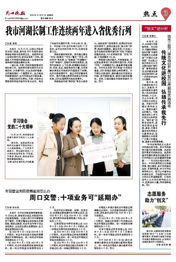 本报讯 为尽快切断疫情传播渠道,10月份以来,我省部分地区采取临时针对性管控措施。记者从周口市车辆管理所了解到,河南交警结合实际推出车辆检验、驾驶证换领、机动车选号等十项业务延期办,主动回应群众急需急盼,全力服务疫情防控大局。