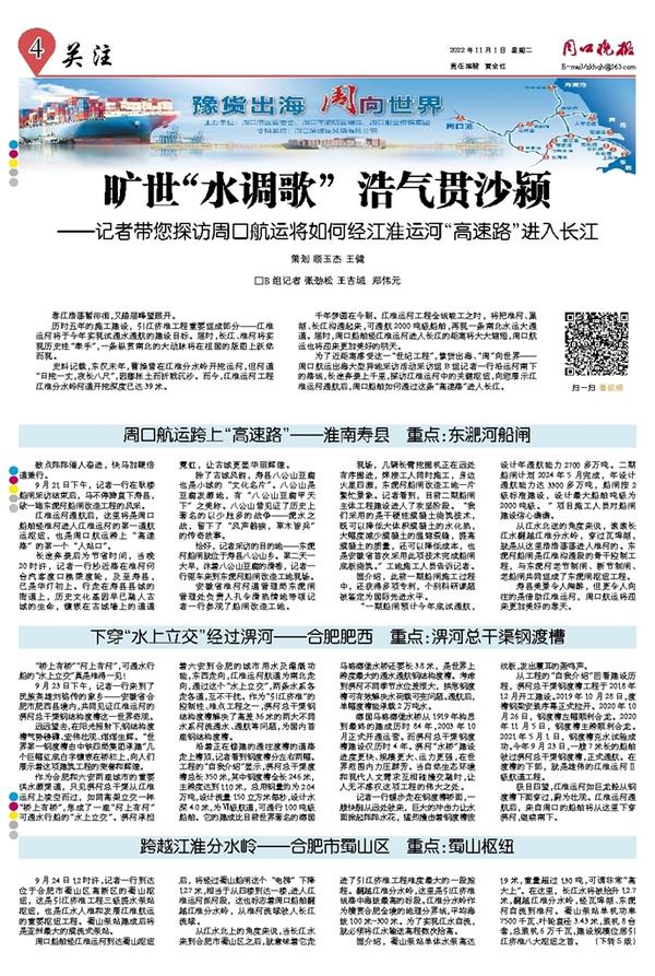 兵分三路,用时10天,转战5省市,行程万余里。9月21日至10月1日,周口报业传媒集团组织的豫货出海、“周”向世界——周口航运出海大型异地采访活动如期实施。活动通过对周口港通往出海口的6条国内集装箱航线进行深度采访报道外,还对即将通航的江淮运河一线重点节点进行了走访。