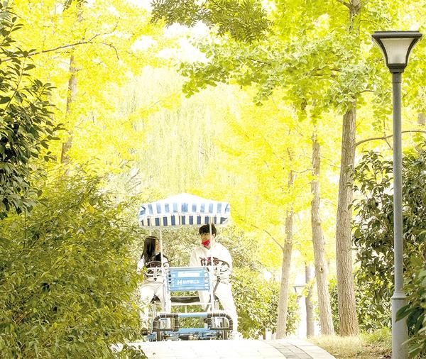近日,深秋的周口中心城区树叶日渐泛黄,大片银杏叶金灿灿的,宛如油画一般,成为周口城区一道靓丽的风景线。记者 梁照曾 摄