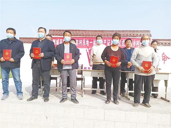 本报讯 “房子有证了,就有保障了!今天非常高兴,领到了我们自己的不动产权证书。党和政府给我们的宅基地和房子进行确权,还免费发证,国家政策真是好啊!”11月1日,郸城县自然资源局认真学习贯彻党的二十大精神,在东风乡前赵村举行农村“房地一体”不动产权证书首证颁发仪式,村民赵殿彬拿着刚领到手的农村“房地一体”不动产权证书高兴地说。