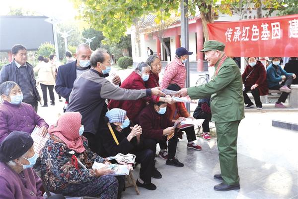 11月2日,86岁的太康县“最美退役军人”、抗美援朝老兵张诗义来到该县消防主题公园广场,分享自己的从军经历和保家卫国的故事,引导广大群众铭记历史、感党恩,激发大家的爱国热情。日前,太康县退役军人事务局在该县遴选出4名优秀退役军人组建“老兵宣讲团”,以“老兵”身份、从“老兵”视角、用“老兵”语言,走进机关、乡镇、村(社区)、公园等,讲述党史知识,分享革命故事,进一步激发广大党员干部、群众学习二十大精神的热情。记者 张洪涛 摄