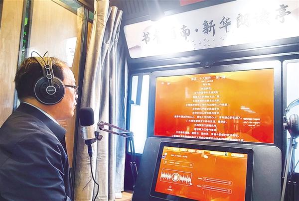 11月3日,项城市商城路与西大街交叉口的新华书店朗读亭内,诵读爱好者正在选读党的二十大报告原文。为深入学习宣传贯彻党的二十大精神,项城市新华书店利用朗读亭,开展了以“诵读二十大 奋进新征程”为主题的诵读活动,进一步激发广大群众学习报告的热情,吸引众多诵读爱好者参与。记者 张志新 摄