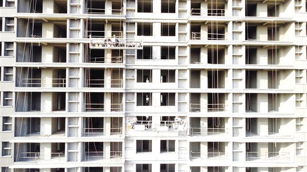 11月6日,周口市一楼盘工人对在建楼房外立面进行粉刷。为贯彻落实省委、省政府关于进一步稳定房地产市场和“保交楼、稳民生”重大决策部署,坚持“房住不炒”的定位,支持刚性和改善性住房需求,按照法治化、市场化原则,统筹运用法律、行政、经济手段,切实解决楼盘项目逾期交付问题,维护人民群众合法权益,实现“保交楼、稳民生”工作目标,周口市先后出台一揽子政策,建立了“一楼一策一专班一银行”机制,分类施策化解,有力保障了“保交楼、稳民生”工作顺利开展。