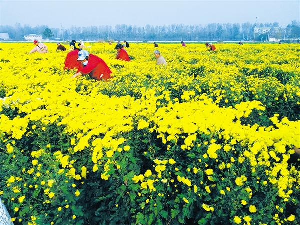 菊花竞开采收忙