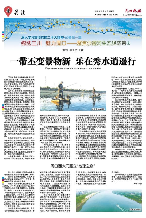 一路美景一路歌。连日来,记者一行从周口中心城区出发,沿沙河彩带般的堤顶路溯流而上,领略两岸风光、景观节点、美丽乡村,深入址坊镇、逍遥镇、叶埠口乡、李大庄乡,近距离感受根植于此的厚重历史文化和文旅风情。