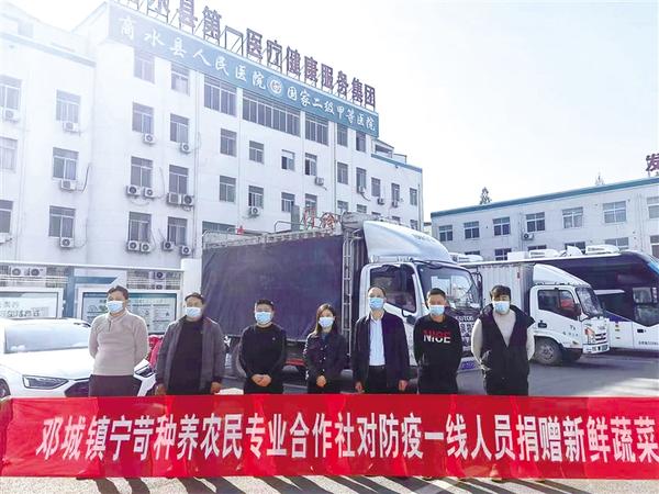 11月15日上午,装载2万斤蔬菜的货车从邓城镇后史村出发,来到商水县人民医院把青菜送到医护人员的手中。