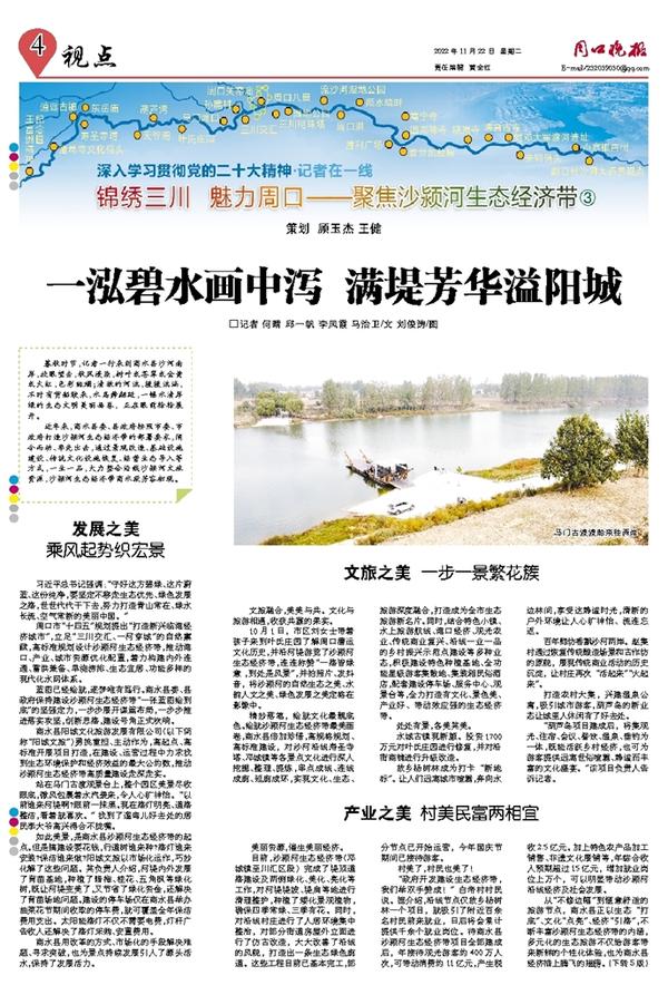 精妙落笔,绘就文化最靓底色。绘就沙颍河生态经济带最美画卷,商水县倍加珍惜,高规格规划、高标准建设,对沙河沿线寿圣寺塔、邓城镇等各景点文化进行深入挖掘、整理、提炼,串点成线、连线成廊、延廊成环,实现文化、生态、旅游深度融合,打造成为全市生态旅游新名片。同时,结合特色小镇、水上旅游航线、港口经济、观光农业、传统商业复兴、沿线一业一品的乡村振兴示范点建设等多种业态,积极建设特色种植基地、全功能星级游客集散地、集装箱民俗酒店,配套建设停车场、服务中心、观景台等,全力打造有文化、景色美、产业好、带动效应强的生态经济带。
