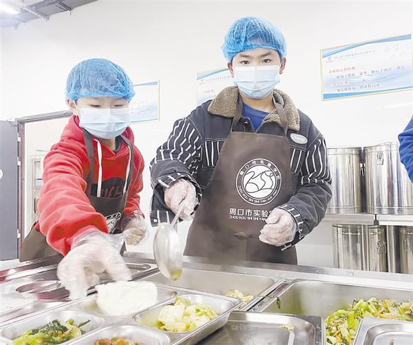 洗净手、系围裙、戴厨帽……11月28日中午,周口市实验学校学生在餐厅开展帮厨活动。日前,该校开展了“我是红领巾小帮厨”主题劳动实践活动,既丰富了学生的校园生活、提升了学生的综合素质,又发挥了劳动实践活动的育人功能。