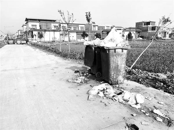 商水县白寺镇岳庄村内垃圾桶溢出生活垃圾散落