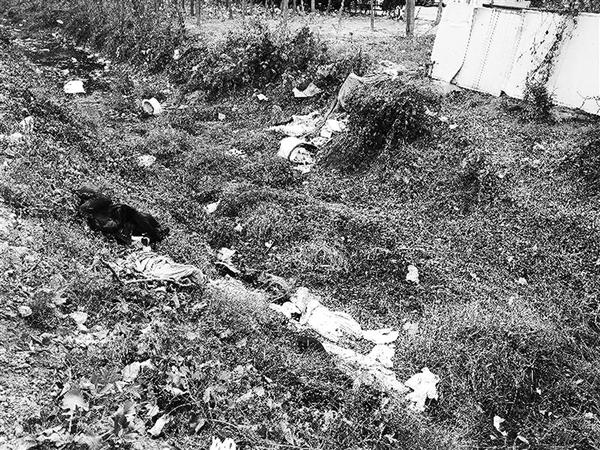 周口经济开发区田野瓜子厂对面河堤边坡多处散落垃圾