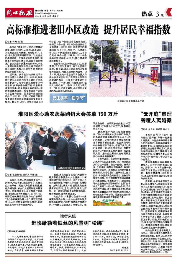 本人是退休教师,常去泰和小区西侧流沙河边公园里散步。这里各种各样的风景树木和花草,真是赏心悦目,由衷感谢市委、市政府为民着想,为民造福。但这里也有让人不舒心的地方。在散步中,我瞅见部分风景树身有铁条勒在里面,有的深达两公分。我伸手想把铁条拉掉,可是怎么都解不开。这些被勒进铁条的树不是人为搞破坏,是开始栽好树后,为防树被风吹倒,用三根两三米长的木棍用铁条捆紧一头围在树叉周围,起支撑作用。但是,等树活稳后,木棍不见了,只留下铁条还箍在树身上。这些铁条已生锈,还死死勒着树身。随着树身逐年增粗,铁条勒得越紧越深,看了让人心疼。这样下去,树很容易被风吹折。希望我所说的事实能引起有关部门领导的重视,派人排查,赶快给树“松绑”。