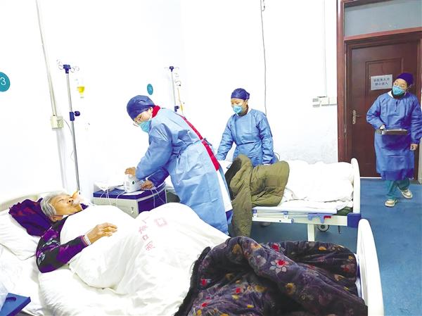 为应对发热患者的不同需求,根据患者病情变化,医护人员迅速处置。日前,周口市人民医院医护人员放弃节假日休息,为患者提供温馨服务。记者 史书杰 摄
