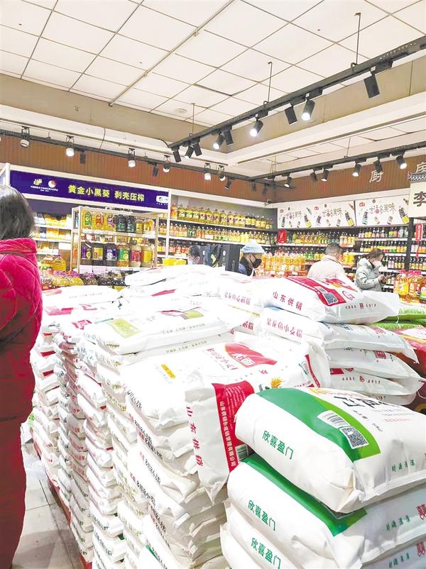在华联生活超市,小广播里循环播放着《好运来》《财神到》。生鲜专柜区各种蔬菜水果琳琅满目,人们在不同的区域前精心挑选所需物品。正在挑选食用油的王女士告诉记者:“超市内货物充足,家里需要的基本都可以买到,很方便。”“现在物价总体平稳,许多农产品价格不贵,大家都放开了手脚买!”商店老板高兴地说。