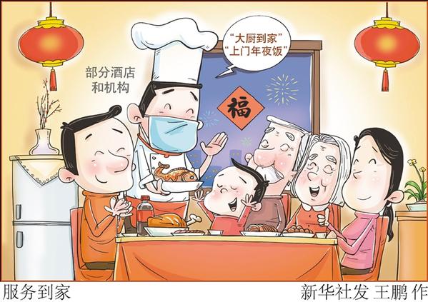 部分酒店和机构推出“大厨到家”业务。厨师根据顾客的口味、需求上门烧制年夜饭,用餐结束后还提供餐具清洗、餐厅厨房区域保洁等服务。