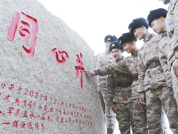 新打的两眼深水井配套了供水和灌溉设施,不仅解决了困扰官兵们的吃水问题,驻地的大棚蔬菜也有了充足水源。即使是大雪封山,也有新鲜蔬菜供应了。吃水不忘挖井人。战士们把这口井称为“同心井”,教育官兵军政军民始终一颗心。
