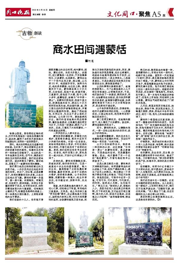 而今,蒙恬和扶苏,以雕像的形式,一前一后站立在商水的农田间,彼此守护和陪伴。