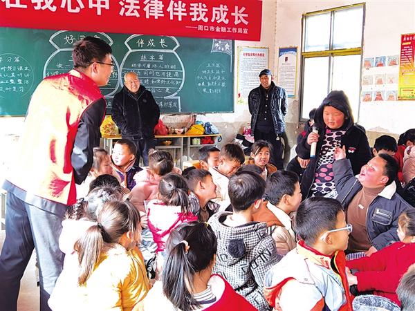当日上午,在郸城县钱店镇常庄小学的教室里,周口市中级人民法院派驻郸城县胡集乡大任庄第一书记李新磊通过有奖竞答、PPT图文演示、俗语小故事等通俗易懂的方式,为学生们上了一堂别开生面的法治普及课(如图)。同学们全神贯注,热情参与。②16
