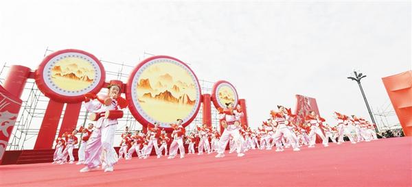 2月21日,在淮阳区伏羲文化广场上,山西翼城花鼓展演赢得现场观众阵阵掌声。②2 记者 梁照曾 摄