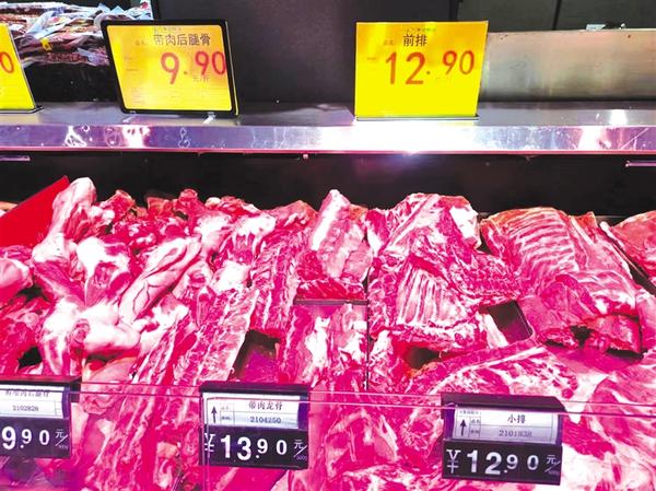 在汉阳路一家生活超市,生鲜柜台的小喇叭反复播放着:“新鲜猪肉今日特价,里脊一斤10.9元、排骨一斤12.9元,欢迎大家前来选购……”“今天过来买些排骨,给家里老人和小孩炖汤。感觉最近猪肉便宜了不少,这一兜排骨才30多元。”王女士拎着刚结过账的排骨说。