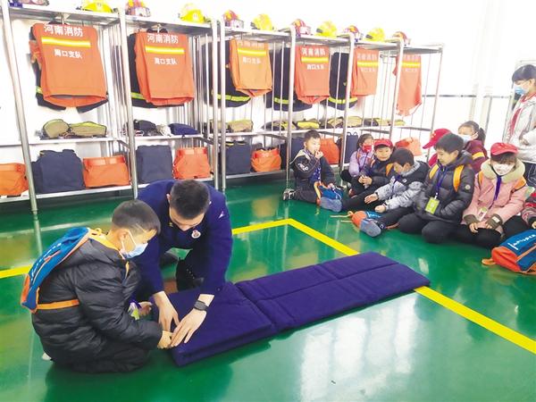 本报讯 2月25日,160多名周口报业小记者分两批先后走进川汇区消防救援大队、示范区消防救援大队,认识救援器材,观看训练现场,对话消防队员,学习防火灭火技能等。
