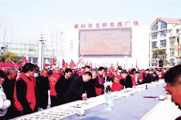 3月2日,在鹿邑县新时代文明实践广场,60余名书画家现场泼墨,为广大市民和书法爱好者献上一场书画艺术盛宴。当日,该县举行以“丹青歌颂二十大 百米长卷扬文明”为主题的书画长卷创作活动,用书画艺术歌颂党的二十大,在丰富群众文化生活的同时,提升了市民文明素养与艺术审美能力。③6记者 侯国防 通讯员 冯瑞 摄