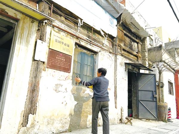 向北几步路的距离,是新街64号“张国华商铺”。房屋坐东朝西,始建于清代,双层砖木结构,灰瓦硬山式双坡屋面,是我市目前遗存下来的为数不多的百年商铺,属于豫东传统式建筑,房屋面阔三间,为两户人家所有。其中一间住户名叫张六兰,因在家中排行第六,便称为六兰。“这间房子是我父亲买下的,如果他还活着的话今年也有109岁了。”据六兰回忆,父亲张有亮14岁时随大伯来到新街学习编竹手艺,租下这间房,建立了“张家竹匠铺”,靠着手艺养活了一家十几口人,后来有了积蓄便买下了这间房。这间房保存了六兰多年的美好回忆,她说:“以前家门口种的有一排绒花树,早晨的时候花最香,可惜现在都没有了,只剩老屋了。”另外两间房的故事则“坎坷”一些,自打六兰记事起,隔壁两间房就转手过3户人家。如今的房主张国华告诉记者:“房子老了,屋里的墙皮一碰就掉,好在老房子现在被挂牌保护,这也给我们吃了一颗‘定心丸’,期待后续开展的保护工作。”