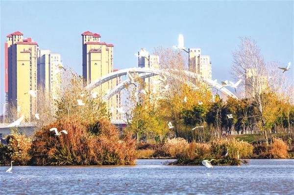 行走在中心城区,道路边、花园里,绿植葱茏、花香四溢;沙颍河、南干渠、流沙河、洼冲沟像一条条玉带穿城而过、蜿蜒流淌,水中鱼鸭嬉戏,蓝天下白鹭起舞;从空中俯瞰,如诗如画的芙蓉湖,流光溢彩的鱼翔湖、落花湖,宛如一颗颗钻石镶嵌其间……