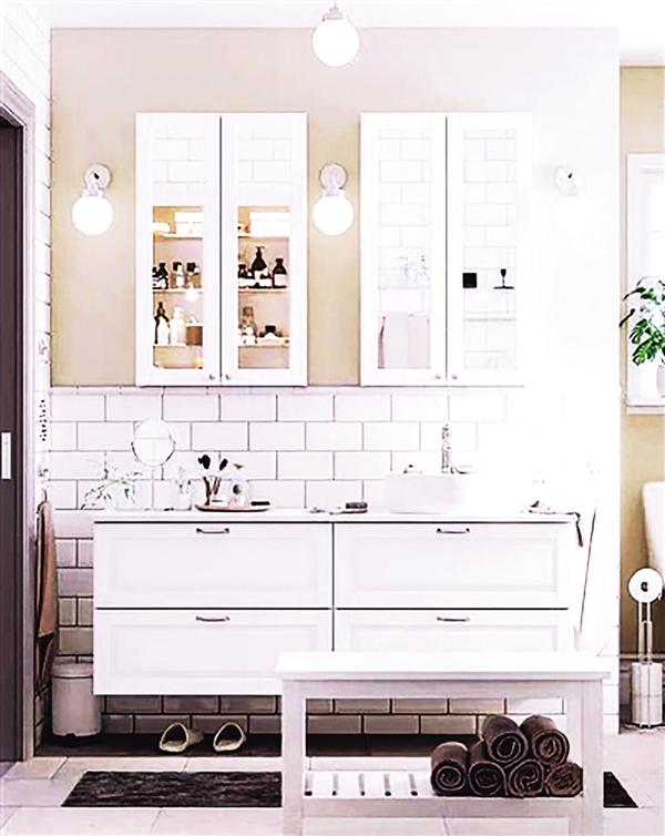 规划好了三个区域的位置,再将沐浴区和坐便区与盥洗区分别用隔断分隔开来。比如使用“透光不透人”的玻璃隔断,既能保护隐私,又能在视觉上兼顾卫生间“整体”的感觉,或者采用半墙与玻璃隔断相结合的模式,墙体的坚固性更好,还可以设置壁龛收纳区。