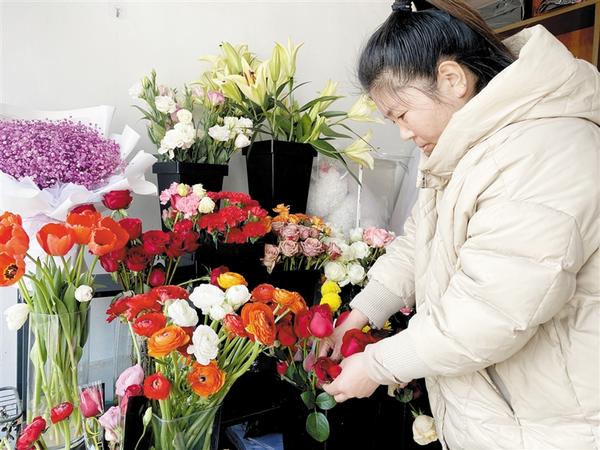 徐文远在五一路经营着一家花店,入行10年来,她在别人的花店做过学徒,也曾在家做过婚礼花艺,对于“三八”节的忙碌景象,深有体会。