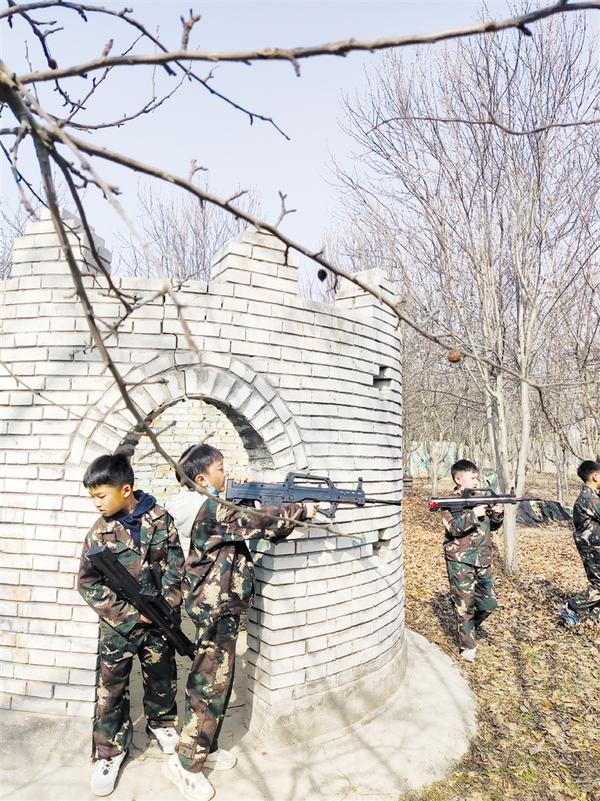 树林深处,真人CS对抗赛正在紧张进行,蓝队红队你攻我守,出其不意,喊声震天,让孩子们感受到“精诚团结胜于一切”的真谛。