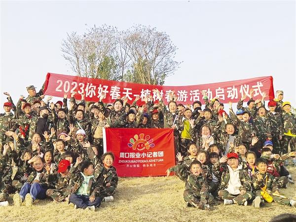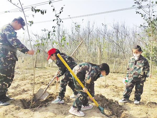 本报讯 又是一年春光好,植树添绿正当时。3月4日、5日,周口报业小记者中心组织小记者来到淮阳区新陆春天农业观光园,化身“绿色小卫士”,参加植树拓展活动,植树、踏青、游戏,追寻春天的脚步。