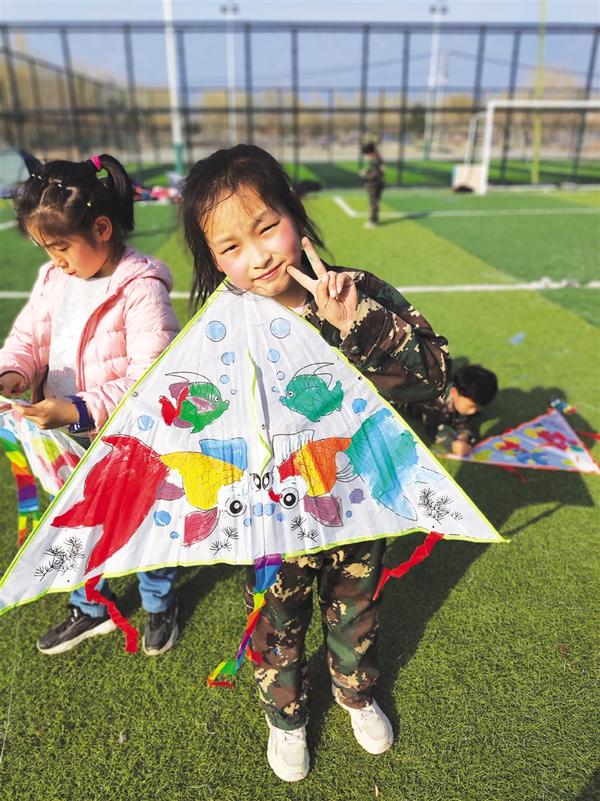 足球场上,手绘风筝开始了,孩子们挥动手中的画笔,尽情发挥自己的想象,天马行空,“肆意”创作,微风下,把风筝和梦想一起轻轻放飞。