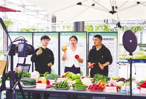 3月9日,网络达人直播宣传扶沟蔬菜。今年,扶沟县打造“中原粮仓”示范区、“中原菜都”核心区、“中原牧场”引领区、水灌溉样板区,为我市建成现代农业强市提供新动能。通讯员 谷志方 摄