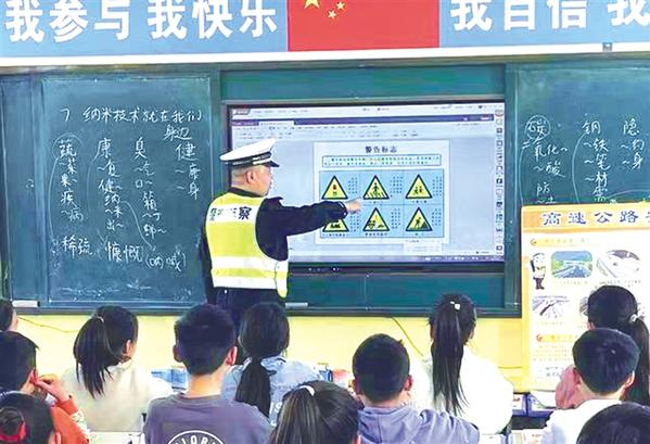 近日,市公安局高速公路交通警察支队四大队民警张培俊带领辅警走进盐洛高速沿线小学,开展“知危险,会避险”交通安全主题宣传活动。他们围绕中小学生交通安全意识薄弱环节及辖区交通安全特点等,有针对性地加强学生的交通安全知识宣传教育。